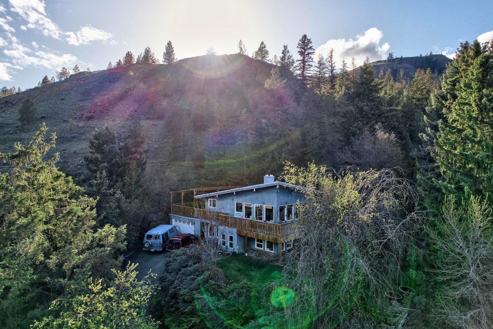 One of a kind home. Nestled into a rural and private Westsyde landscape.This unique home has 4 bedrooms and 2 bathrooms and sits on 0.63 acres, minutes from shopping, schools, transportation and The Dunes Golf Course. The central feature is the large rock cladded fireplaces in the basement and main floor living area. Most of the home is tongue and groove cedar wall board, giving the home a unique cabin feel. With exposed beams, vaulted ceilings and large windows that allow tones of natural light into the main living area, this home is a must see. Home features a 22'x17' garage and same size covered deck above, perfect for the nature lover but still wanting to be close to all amenities. The wrap around deck also gives many different views of the private surroundings.